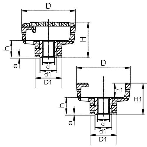 Nr. | Artikel | D | d | D1 | d1 | H | H1 | h | h1 | e | Gew. | Stückzahl |