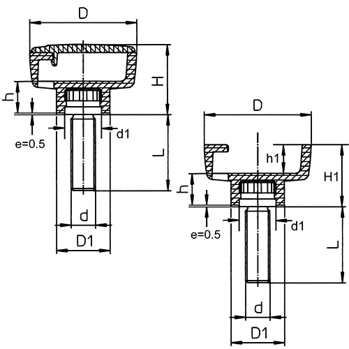Nr. | Artikel | D | d | D1 | d1 | H | h | H1 | h1 | L | Gew. | Stückzahl |